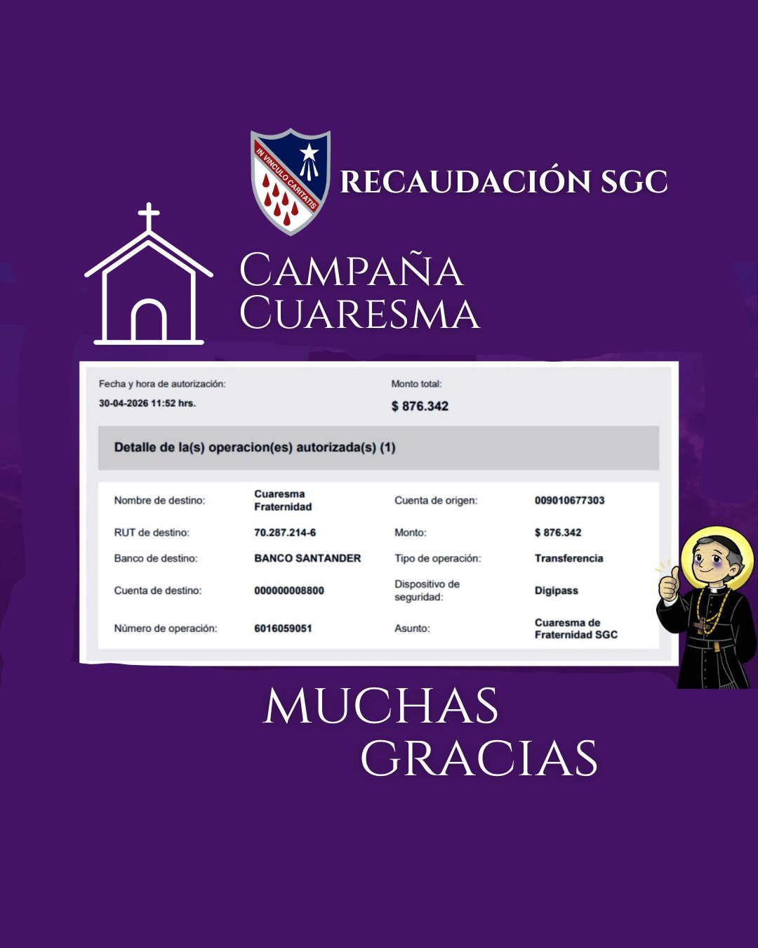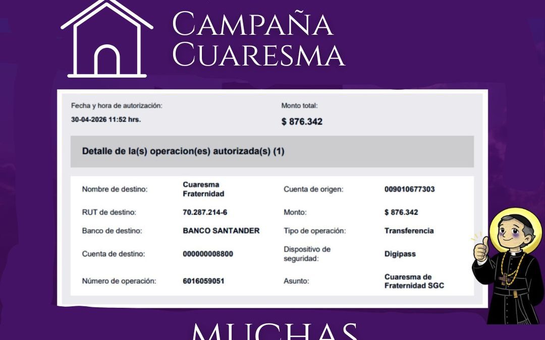 Hoy queremos dar gracias de corazón por la hermosa muestra de generosidad vivida en nuestra campaña de Cuaresma 2026. Gracias al compromiso de cada uno de ustedes, logramos reunir $876.342, un gesto concreto de amor y servicio.
